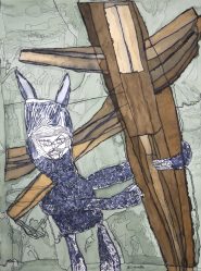 Mathew works mainly in etching, drawing and gouache, and draws inspiration from everyday life, ancient fables and horror films. “I like to use pen and pencil,” says Mathew. “I draw using pens and technical markers. I paint them using ink and wash. Sometimes, I do hand sewing.”